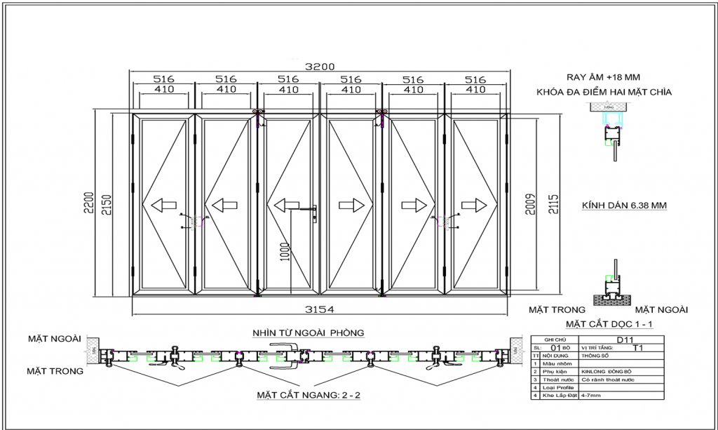 THÔNG SỐ KỸ THUẬT CỬA ĐI MỞ XẾP TRƯỢT NHÔM XINGFA NHẬP KHẨU