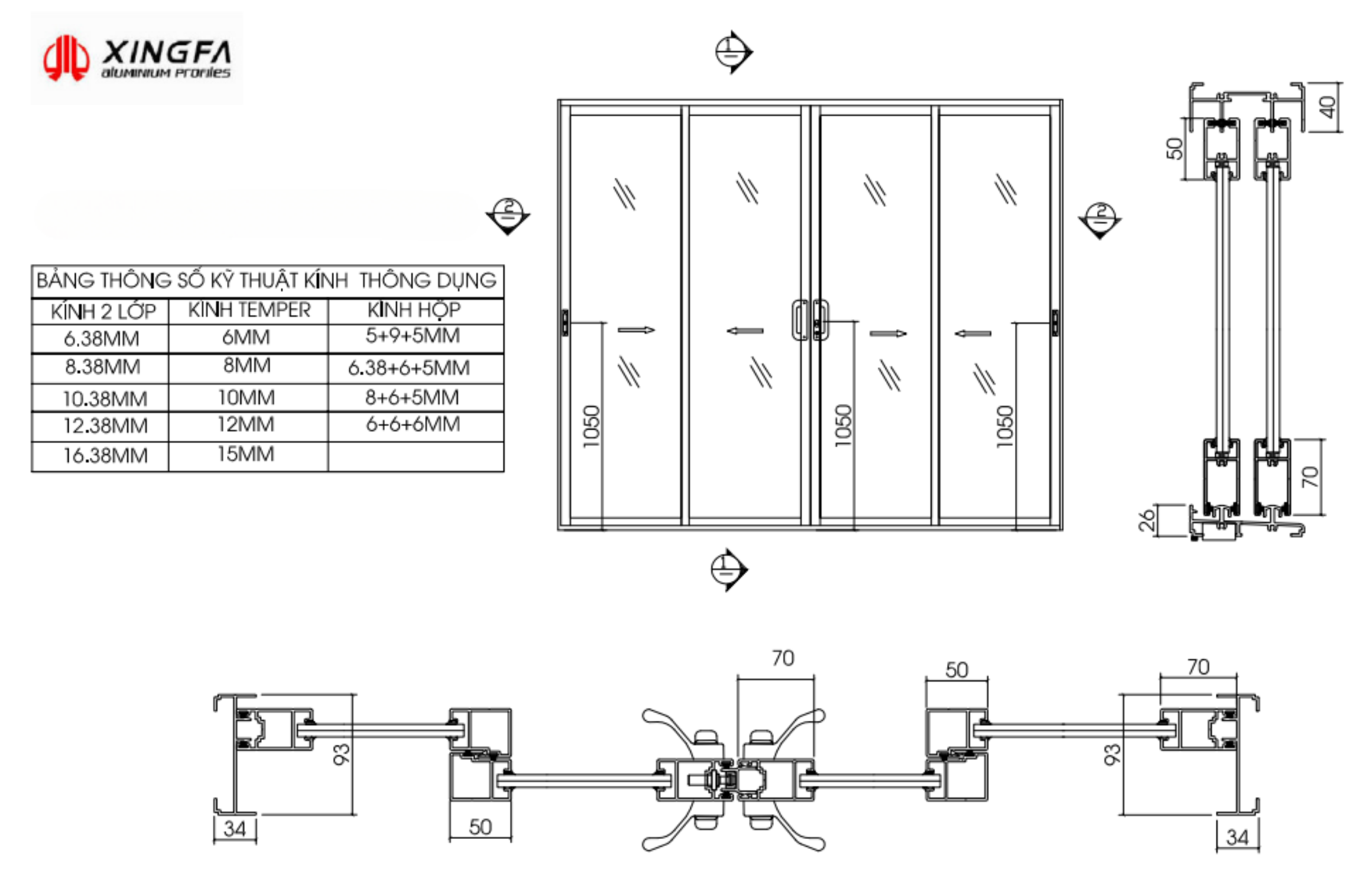 + Cửa và vách được cấu tạo từ thanh hợp kim nhôm hệ Xingfa cao cấp có cấu trúc dạng hộp chia thành nhiều khoang trống kết hợp với hệ gioăng và hệ phụ kiện kim khí đồng bộ đã tạo nên sản phẩm có khả năng cách âm tốt, cách nhiệt cao.