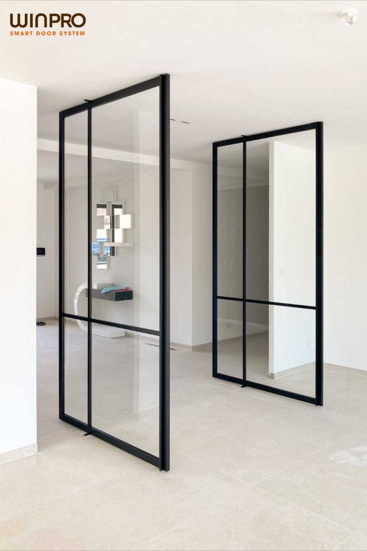 Cửa xoay trục giữa không gắn trực tiếp lên tường bằng bản lề thông thường. Cửa nhôm mở 2 chiều được gắn một đầu vào khung cửa và đầu còn lại trên mép dưới, mép trên của cửa. Cửa mở được theo hai chiều. Đáp ứng nhu cầu đi lại cao của khách hàng. Nhờ vào hệ thống bản lề 180 độ cửa có thể mở góc rộng nhất cửa có thể mở là 180 độ.