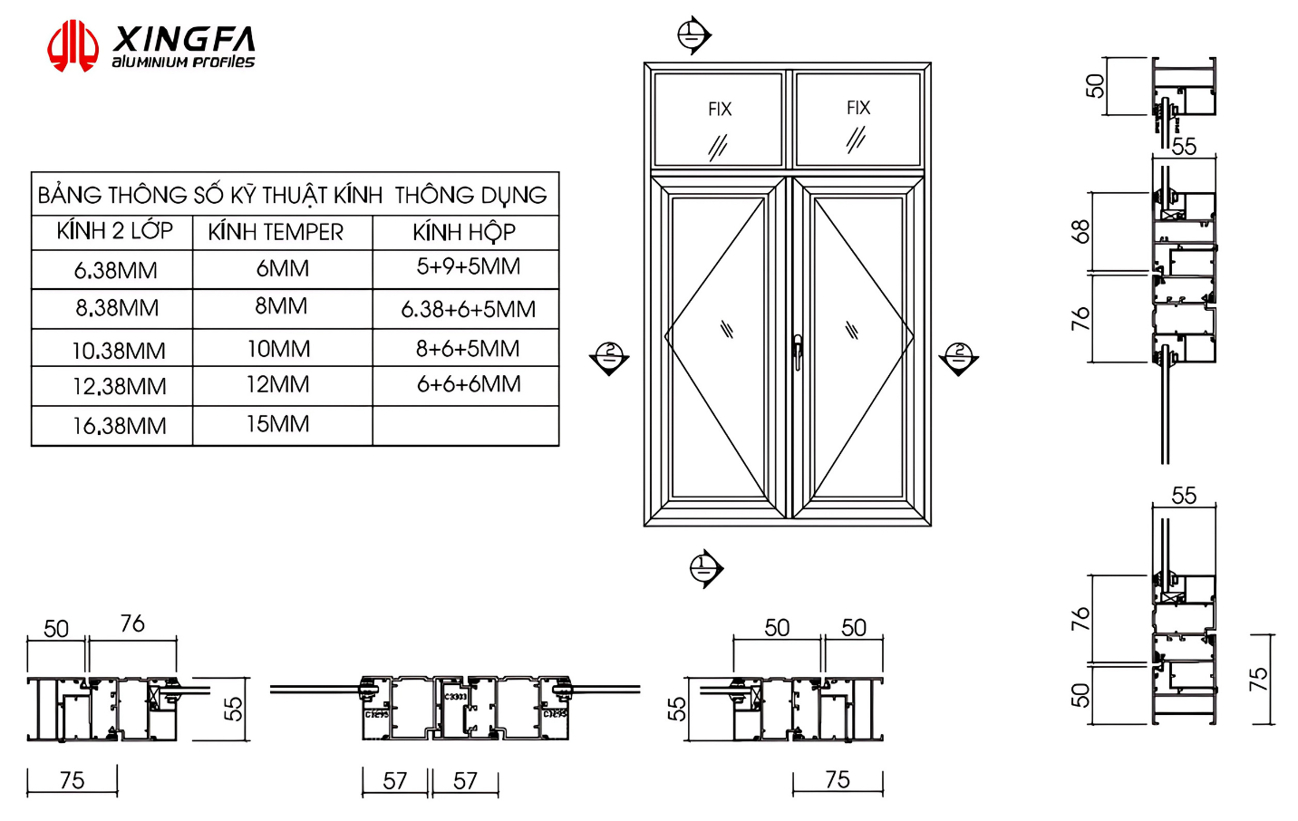 THÔNG SỐ KỸ THUẬT CỬA SỔ MỞ QUAY NHÔM XINGFA NHẬP KHẨU